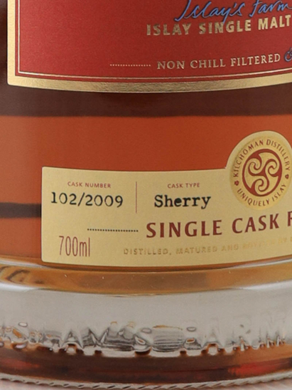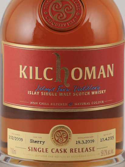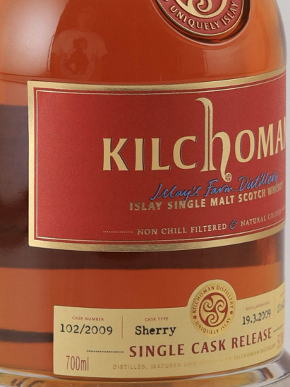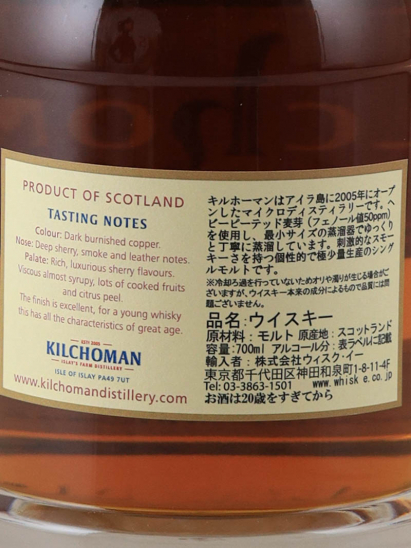 「キルホーマン シェリーバット 2009」は、生産量の80%をバーボンバレルで熟成している キルホーマン蒸溜所において、生産量の少ない大変貴重なシェリーバットのシングカスクを、 加水なしのカスクストレングスでボトリングした日本限定商品です。
