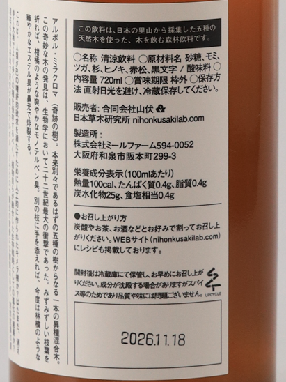 商品コード SY111-042 メーカー 日本草木研究所 地域 大阪府 度数 0% 容量 720ml 賞味期限 2026年11月18日 化粧箱 なし