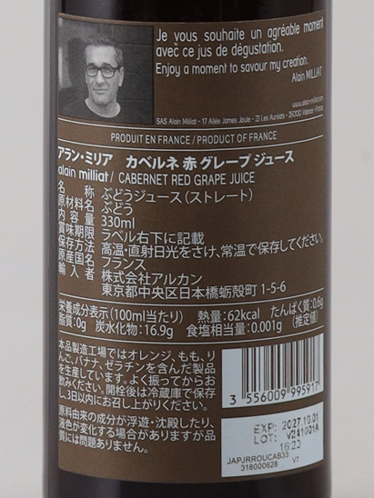 「アラン ミリア カベルネ 赤グレープジュース」は、早摘み収穫されたフランス・ガイヤック産カベルネ・ソーヴィニヨンを使用した、シャープさと華やかさが魅力的な1本。