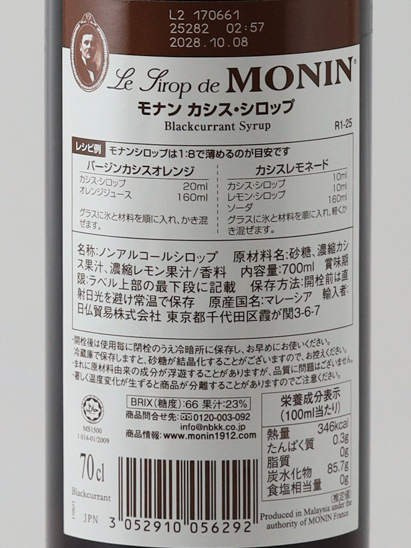 「モナン カシス シロップ」は、カシスの甘酸っぱさが活きているシロップで、ヨーロッパで大人気のフレーバーです。ソーダ、グラニタ、カクテルと幅広くお使いいただけます。