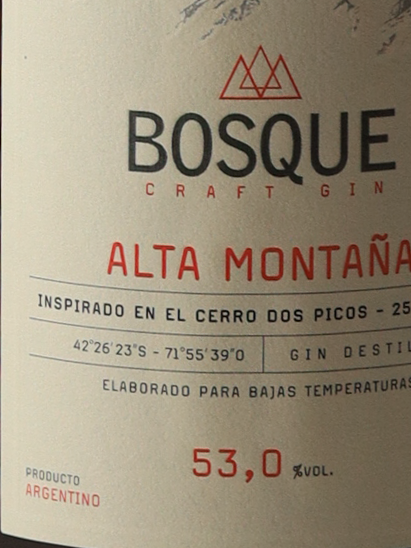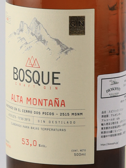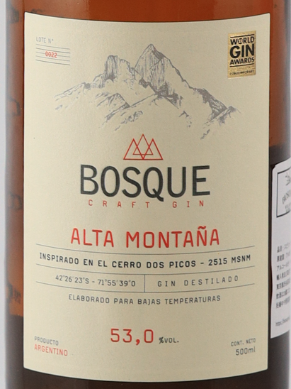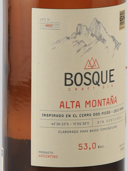 ボスケ・ネイティブクラフトジンの製法を元に、パタゴニアの高山において体を温めるためにアルコール度数を53%まで高めたハイプルーフのジン。