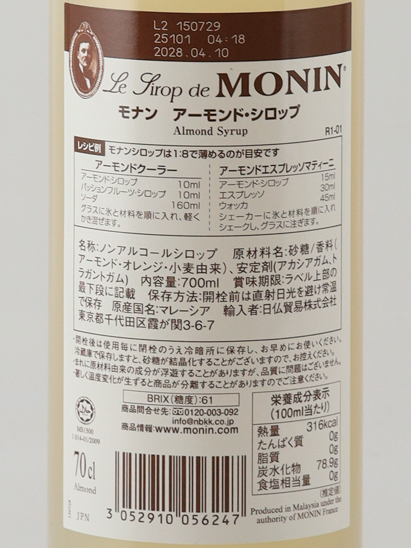 商品コード SY111-016 メーカー モナン 地域 フランス 度数 0% 容量 700ml 賞味期限 2028年4月10日 化粧箱 なし