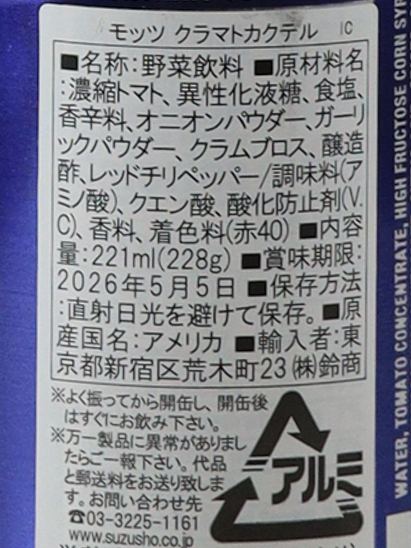 モッツ社オリジナルの「クラマトトマトカクテル」は、企業秘密のスパイスを使用した、誰にもまねできない、トマトとクラム(ハマグリのエキス)のジュースです。