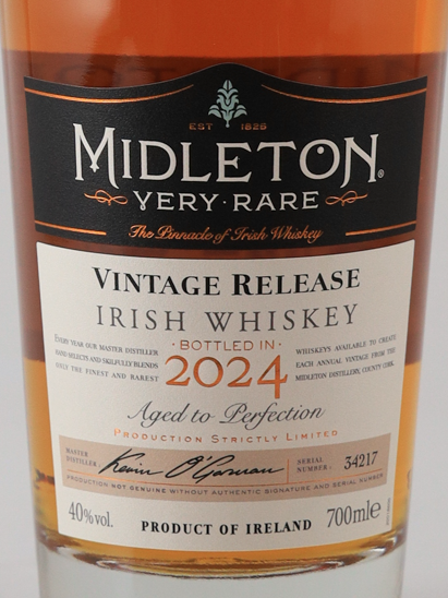 複雑でエレガントな味わいが魅力。2024年はミドルトンベリーレア40周年にあたり、熟練の証となる1本になっています。